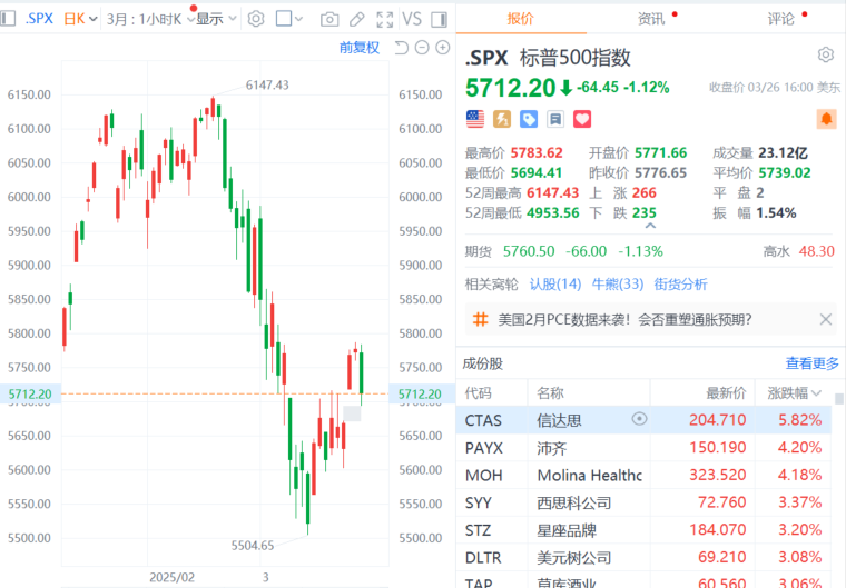 财联社3月27日电,美股三大指数集体收跌,纳指跌2.04%,创3月11日以来最大单日跌幅;标普500指数跌1.12%,道指跌0.31%。美股费城银行指数收跌0.8%,结束此前连续八个交易日上涨的趋势。大型科技股普跌,特斯拉、英伟达跌超5%,英特尔、谷歌跌超3%,亚马逊、Meta、奈飞跌逾2%,微软跌超1%,苹果小幅下跌。巴菲特旗下伯克希尔哈撒韦B类股涨近1%,继续创收盘历史新高。