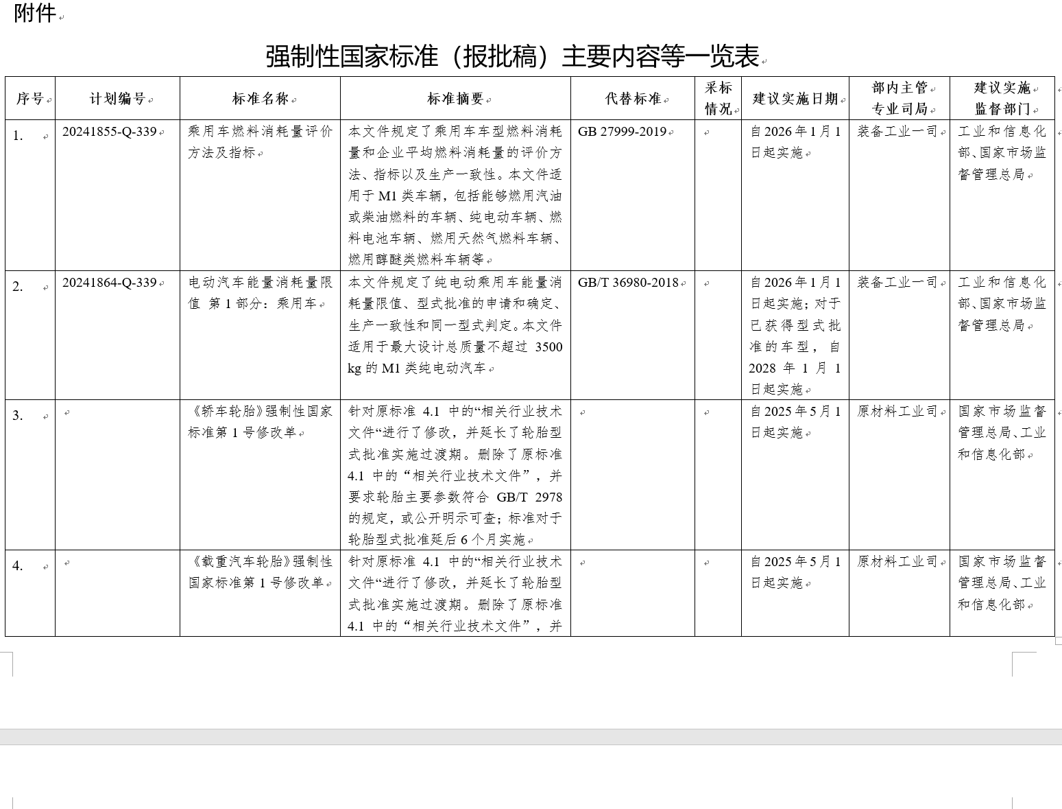 14:52:37 财联社3月31日电,工信部公开征求对《乘用车燃料消耗量评价方法及指标》等4项强制性国家标准(报批稿)的意见。
