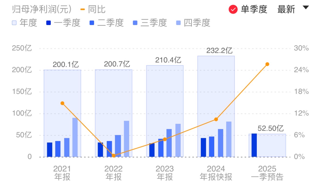 财联社4月8日电,工业富联(601138.SH)公告称,2025年第一季度预计营业收入1590亿元-1610亿元,同比增长34.0%-35.6%;预计归属于上市公司股东的净利润为52亿元-53亿元,同比增长24.4%-26.8%。云计算业务方面,板块营业收入同比增长超过50%,AI服务器、通用服务器营业收入同比皆超过50%。通讯及移动网络设备方面,公司积极推进战略布局,有效实现对客户的稳健出货。公司将继续聚焦主营业务,推动AI+技术创新和经营提质增效。小财注:2024年Q4净利80.75亿元,据此计算,预计Q1净利环比下降34%至35.6%。