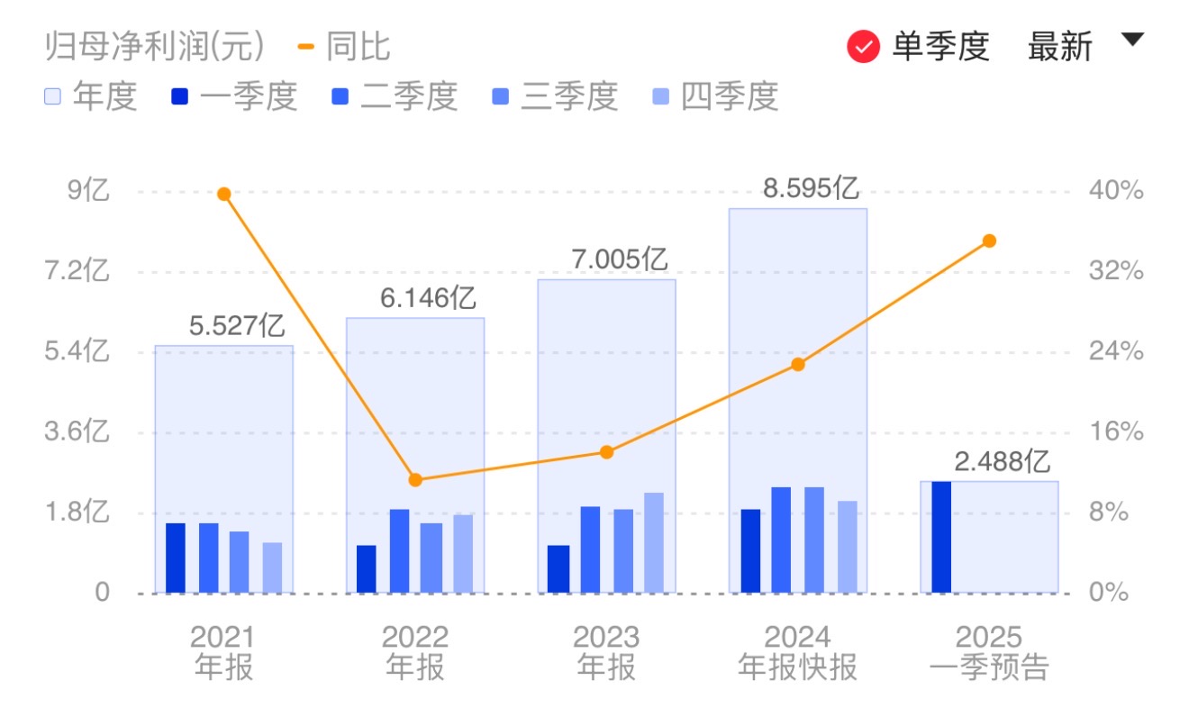 财联社4月10日电,沃尔核材(002130.SZ)公告称,预计2025年第一季度归属于上市公司股东的净利润盈利2.4亿元-2.58亿元,比上年同期增长30%—40%。业绩增长主要得益于公司不断加大研发和市场开拓力度,持续开发新产品、新客户,使得公司电子产品、电线产品以及新能源汽车业务相关产品的营业收入均实现不同程度增长。其中,受益于数据通信等下游行业快速增长的需求,公司高速通信线产品收入增速较快。同时,公司通过提升自动化水平、提高生产效率等方式提升盈利能力。小财注:2024年Q4净利2.04亿元,据此计算,预计Q1净利环比增长17.65%至26.47%。
