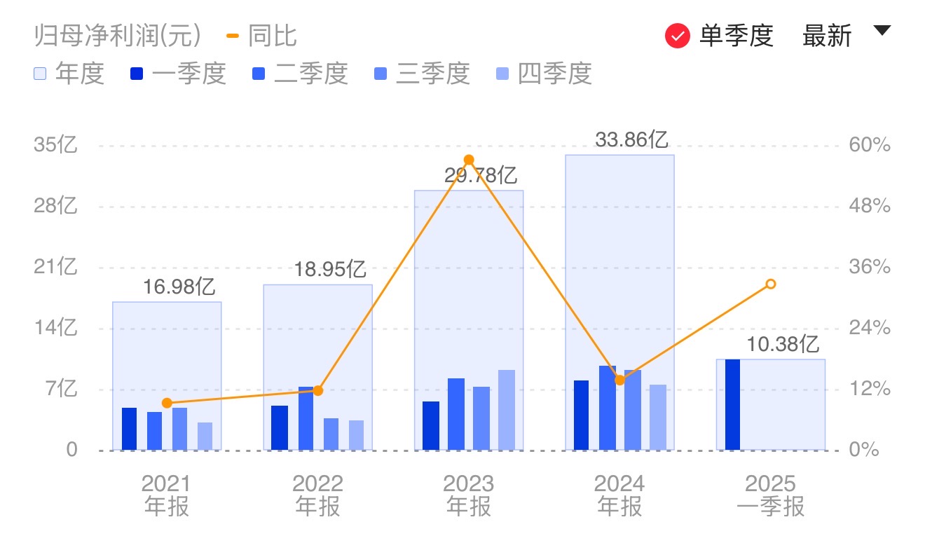 财联社4月29日电,中金黄金(600489.SH)公告称,2025年第一季度报告显示,公司实现营业收入148.59亿元,同比增长12.88%;归属于上市公司股东的净利润为10.38亿元,同比增长32.65%。公司抓住产品价格上涨的有利时机,科学组织经营,进一步降本增效,导致业绩出现较大幅度增长。小财注:2024年Q4净利7.43亿元,据此计算,Q1净利环比增长39.79%。
