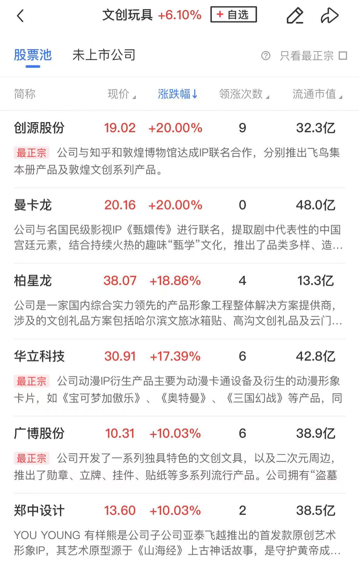IP经济等方向再度大涨,曼卡龙、创源股份、潮宏基、郑中设计、广博股份、莱绅通灵、奥飞娱乐、京华激光、实丰文化等个股涨停。