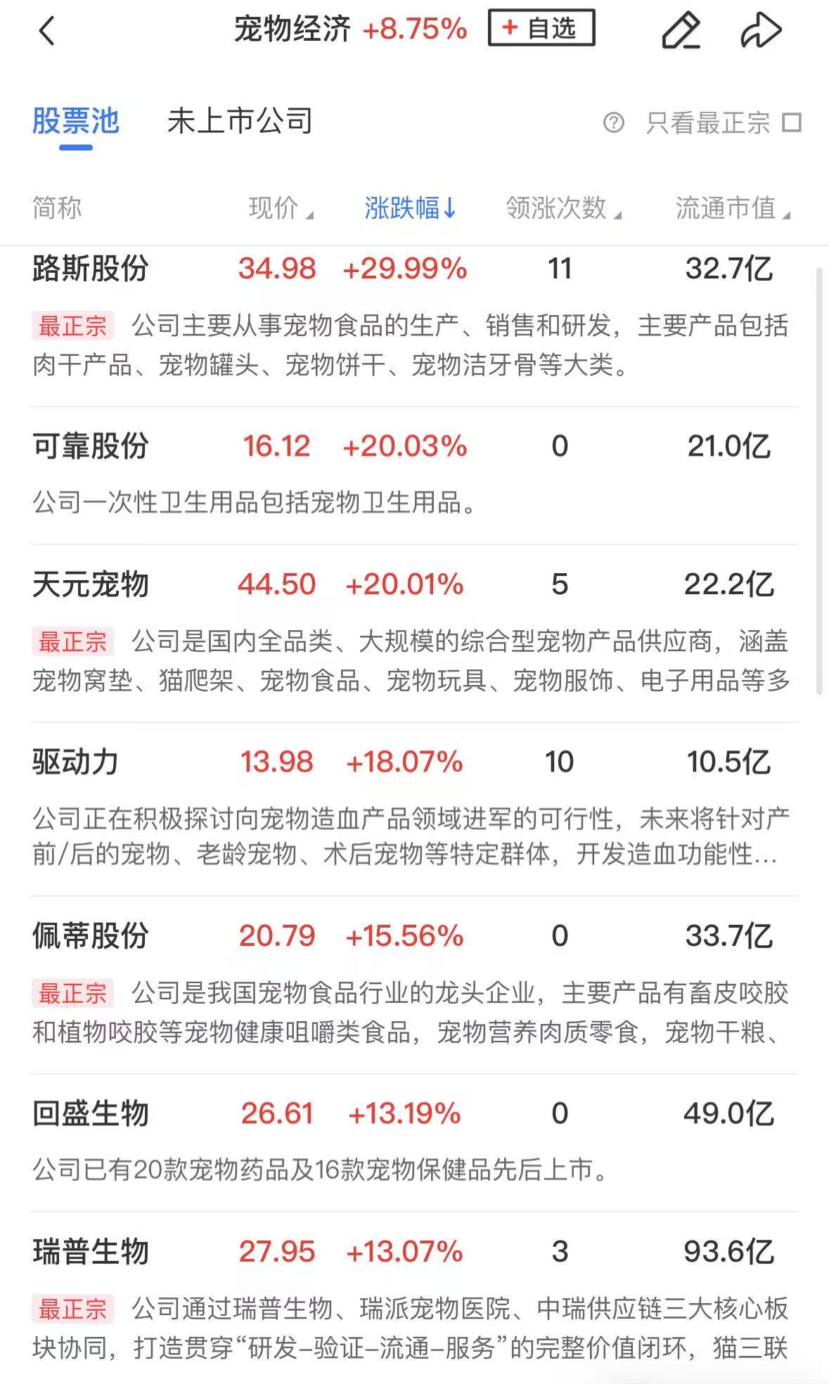 板块上,新消费方向再迎全线爆发,宠物经济领涨两市,可靠股份、天元宠物、创源股份、依依股份、大千生态、实丰文化等个股涨停,驱动力、佩蒂股份、回盛生物、瑞普生物涨超10%。