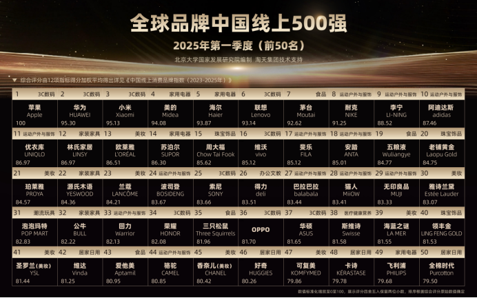 北大”中国线上消费品牌指数(CBI)“是全球首个以真实消费大数据为基础、聚焦高质量发展的线上消费指数。研究团队基于淘宝天猫平台消费大数据,通过建模分析,对全网所有品牌进行评分,首次以“一篮子”消费品牌的平均分来刻画消费品质变化,并编制出全球首个完全基于消费者实际购买行为的品牌榜单“全球品牌中国线上500强”。指数与榜单将按季度,持续公布。