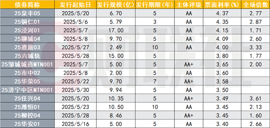 5月新发的城投债中,票息最高不超过4.4%,仅有5只城投债票息还超过4%。认购倍数显示,高息城投债认购情况良好。