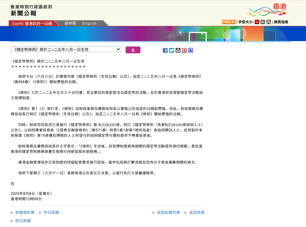 12:06:55【香港《稳定币条例》将于8月1日生效】