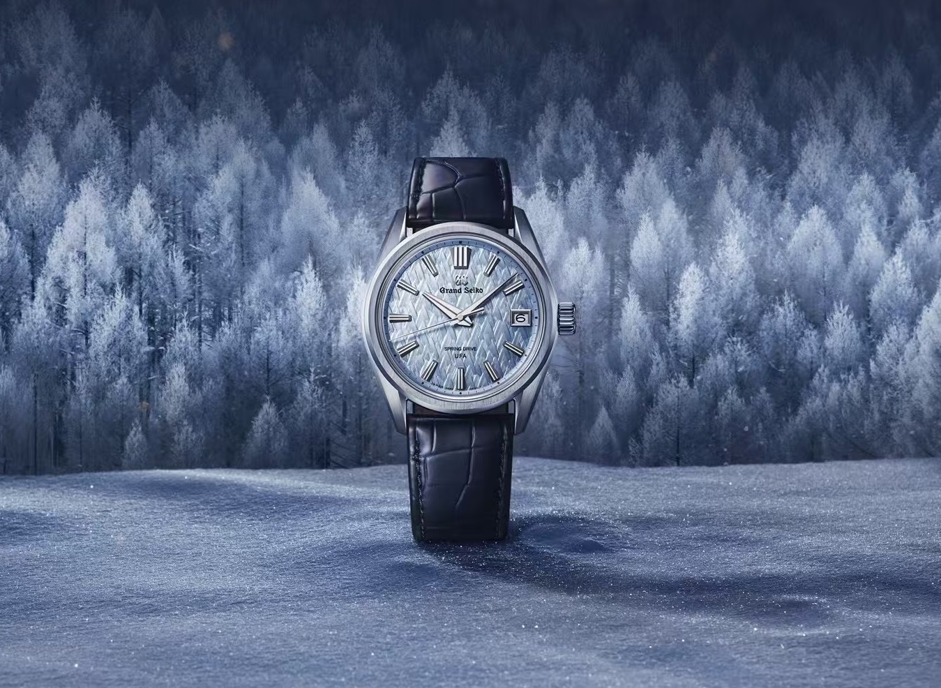 机芯设计灵感来源于制造地信州腕表工房的自然环境,体现出了独特的日式美学。宝石与工房周边群山上闪烁的初冬星光相呼应,机芯表面的精致纹理展现了冬天赋予信州(所有Grand Seiko Spring Drive腕表的产地)树木的霜冻。两款腕表的表盘纹理精致,采用精加工技术打造淡蓝色调,成功捕捉了冰林之美。钛金属表盘呈现银蓝色,铂金表盘的蓝色略深。