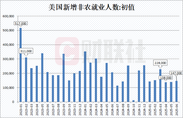 财联社7月3日电,美国6月非农就业人数增加14.7万人,预估为增加11万人,前值为增加13.9万人。