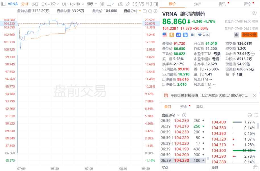 18:39:06【维罗纳制药美股盘前涨超20%】