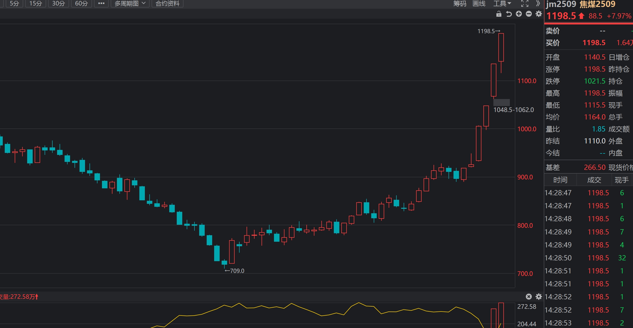 14:24:06【焦煤期货主力合约日内触及涨停】
