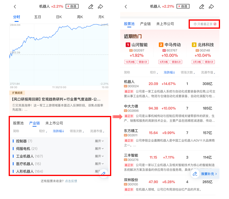 概念板块最让投资者头疼的是“蹭热点”的伪概念股——公告里提一句“布局XXX”就股价涨停,但实际业务占比不足1%。「主题库」通过“人工+智能算法”双重验证,推出“只看最正宗”功能,精准锁定产业链中真正受益的核心标的。
