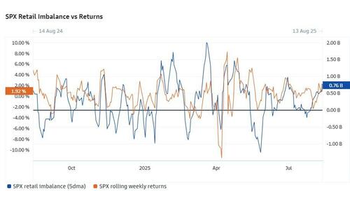 可以看到的是,散户(买卖)失衡数据与标普500指数的价格走势密切相关。