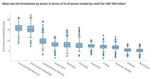 在具体板块方面,高盛发现,散户投资者强烈青睐于非必需消费品和科技股,而态度最为冷淡的则是房地产和公用事业板块。