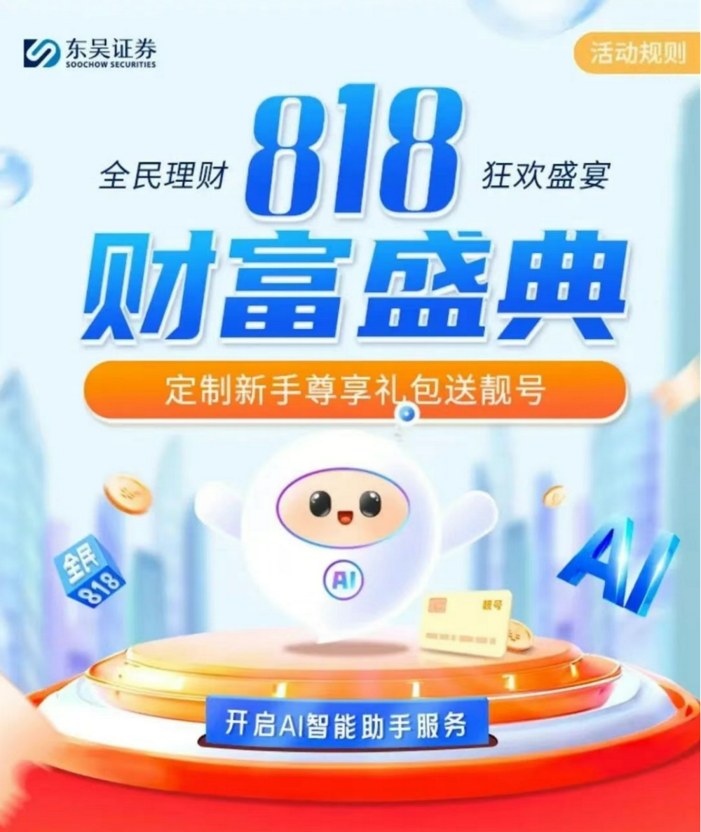 东吴证券推出的新客专区活动,可定制超值专属权益,能免费领限量开户靓号(888/666/168等稀缺号段,先到先得),还有智选权益礼包,包含Level2以上的行情、智投股票池体验券、尊享理财券、APP的VIP会员升级权益卡等福利。