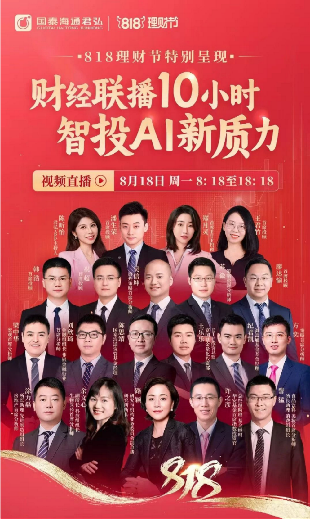 在财富管理转型与金融科技浪潮的双重推动下,不少券商选择通过视频直播的陪伴式服务深耕价值客户。包国泰海通、粤开证券、广发证券、光大证券、财通证券、华福证券、西部证券、开源证券等券商带来各具公司特色的全方位市场解读。此外,在人工智能等新兴技术深度渗透金融服务生态的背景下,AI已成为今年券商“818理财节”的核心关键词。