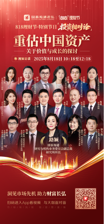 聚焦转型创新,解析行业投资逻辑,新兴科技为资本市场注入持续活力。特别节目汇聚机械、电子、港股互联网、生物医药、消费、非银金融、地产等多个热门领域的首席分析师;国泰海通资管、华安基金、海富通基金的首席投资官、基金经理为投资者把脉投资逻辑,助力投资者汲取投资智慧,领略前沿投资思维,特别直播精彩回放敬请关注国泰海通君弘APP、视频号;国泰海通818理财节推出五档王牌直播栏目,将持续为投资者研判投资机遇,传递科学投资方法。