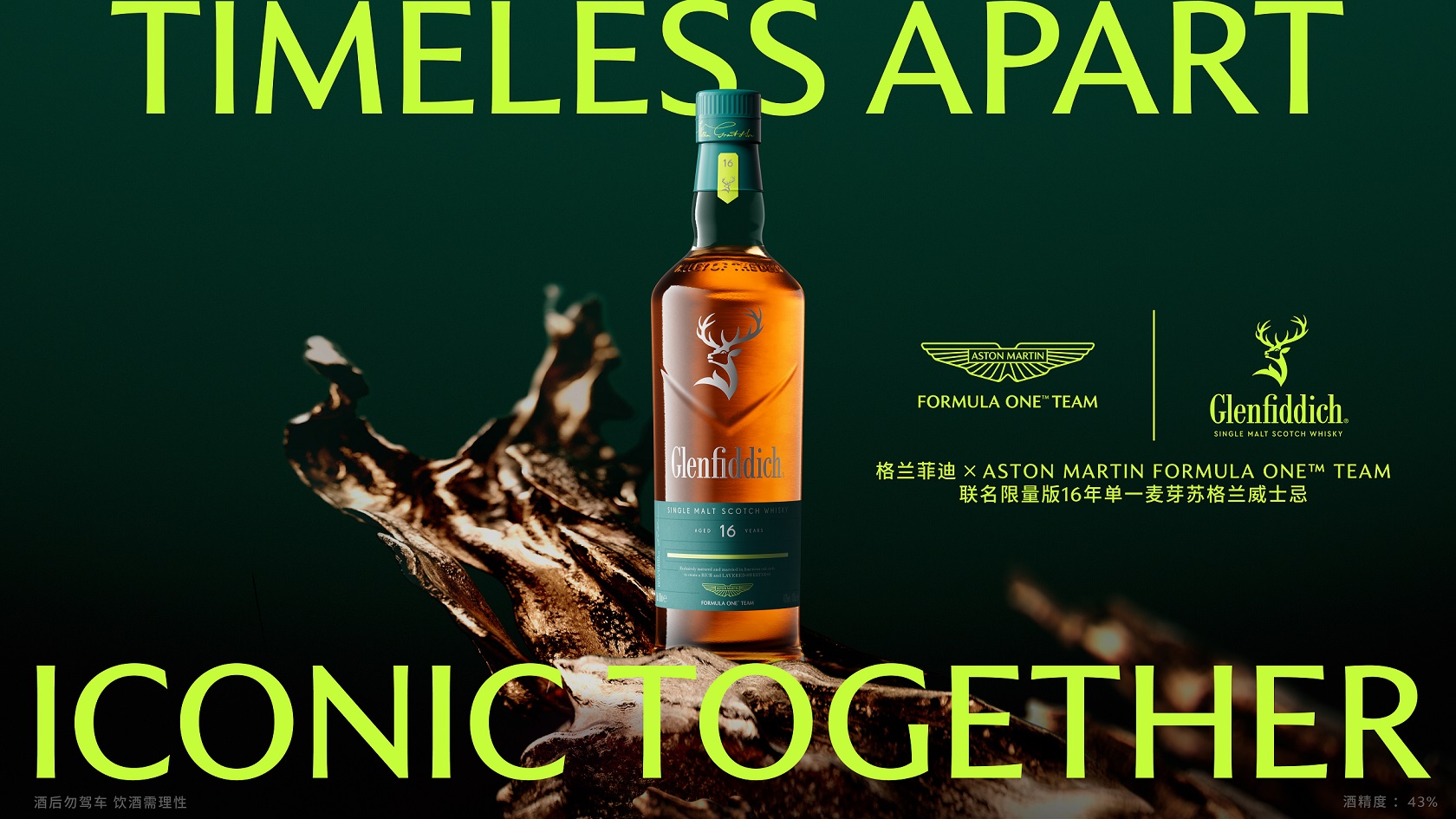 近日,格兰菲迪×阿斯顿•马丁一级方程式车队联名限量版16年单一麦芽苏格兰威士忌全新上市,为这场传奇联袂树立了新的里程碑。