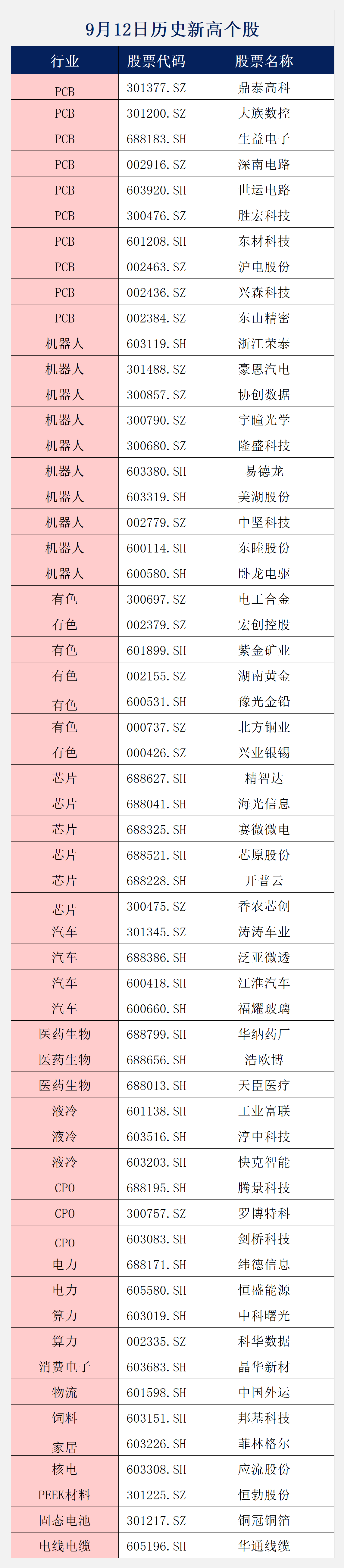 一、历史新高个股