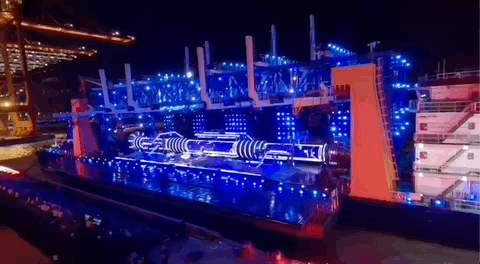 《CMG科创晚会》以全球最大的铺排船为舞台,以东方大港的工业美学为背景,在江海汇流处、天地交会间,打造科技与艺术碰撞的奇幻空间!