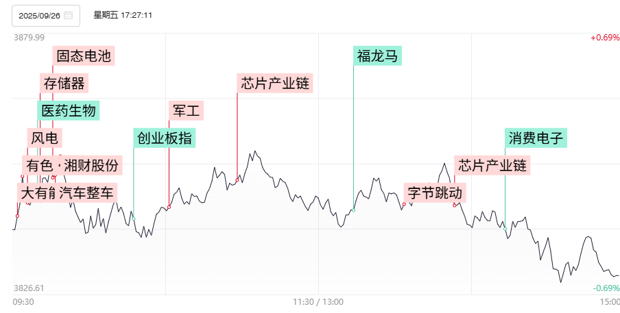 今日市场短暂冲高后,全天大部分时间呈现弱势探底行情,算力硬件、消费电子、游戏等应用端等多个细分的全线下挫,使得创业板指今日缩量中阴线向下反包,终结此前日线4连涨。个股方面,今日下跌个股家数仍有超3400家,跌停家数相比昨日显著增加至20余只,且有近300股跌超5%,个股亏钱效应显著放大,反映市场做空动能开始向此前领涨的热门方向持续蔓延,银行、保险等权重板块护盘使得上证50指数走势相对偏强。从沪指方面看,今日该指数已经跌破日线布林线中轨,且也是近3个月来首次跌破5周均线,结合国庆长假前仅剩下2个交易日,短线在市场增量资金匮乏之际整体仍应保持适当谨慎控制仓位为宜。