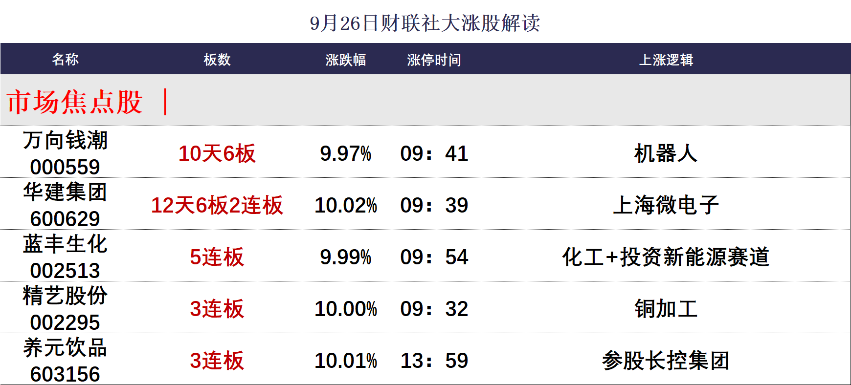 财联社9月26日讯,今日47股涨停,23股炸板,封板率为67%,蓝丰生化5连板,养元饮品、精艺股份3连板,品茗科技20cm2连板,万向钱潮10天6板,华建集团12天6板,北交所锦华新材30cm首板。市场全天震荡调整,创业板指盘中跌超2.5%。沪深两市成交额2.15万亿,较上一个交易日缩量2242亿。盘面上,市场热点较为杂乱,题材强度一般,全市场超3400只个股下跌。板块方面,风电、保险等板块涨幅居前,游戏、算力硬件、光刻机等板块跌幅居前。截至收盘,沪指跌0.65%,深成指跌1.76%,创业板指跌2.60%。