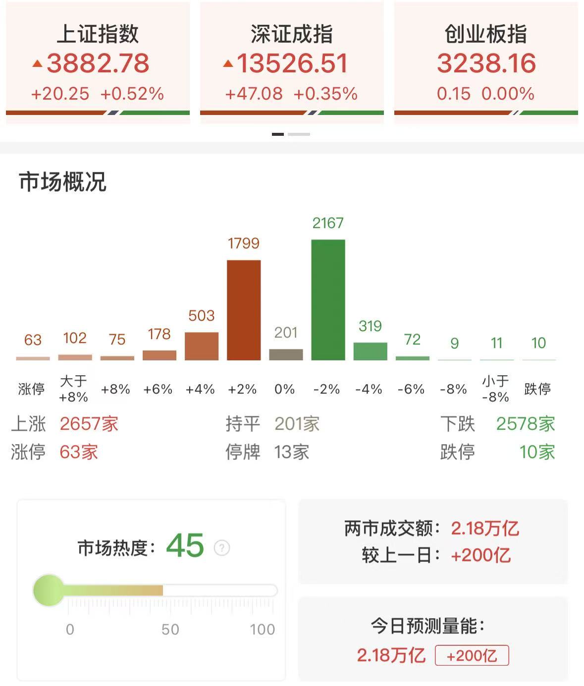 ①今日市场震荡走高,三大指数全线收涨,沪指刷新年内新高,创业板指涨超3.5%;