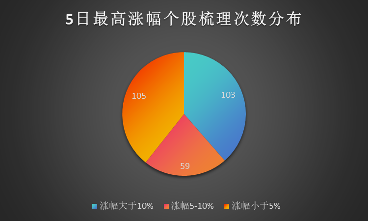 同时,栏目作为热点追踪类的栏目,注重高效的短期表现,提及的重点公司受到事件催化获资金关注,股价大概率在短期内受到影响而产生异动、甚至爆发。以5日最高涨幅统计来看,103次梳理后5日最高涨幅超10%,相当于平均每个交易日梳理1-2家上市公司股价爆发,其中更有48次梳理后涨幅超20%;59次梳理后最高涨幅区间在5%-10%。
