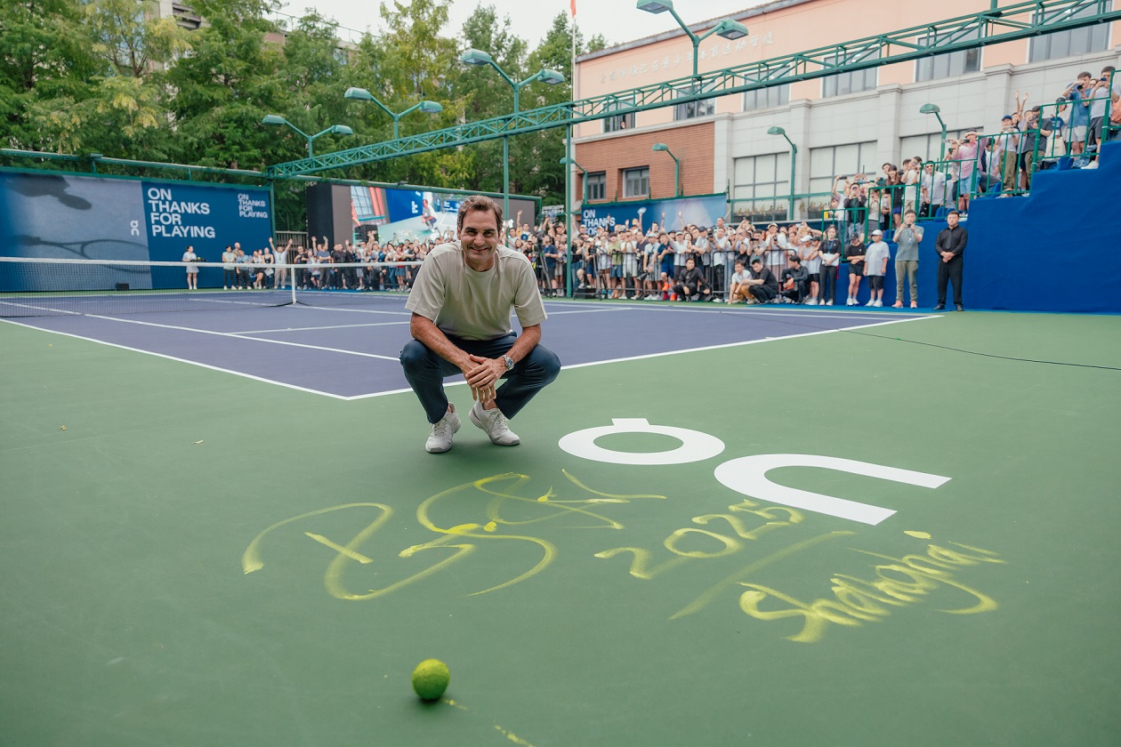 10月8日,瑞士运动品牌On昂跑在上海举办第二届“致敬每一场”活动,与On昂跑联合创业者罗杰•费德勒(Roger Federer)共同致敬中国网球事业的幕后英雄,并揭幕焕然一新的“上海市徐汇区第一少年业余体育学校”(下称少体校)网球场。
