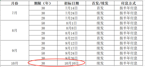 值得注意的是,与4月最初公布的2025年特别国债发行计划相比,9月30日财政部最新公布的四季度发行计划有所调整。原定于10月10日续发最后一期30年期超长期特别国债,变更为续发两期,且期限分别是20年和50年。今年的特别国债发行工作延后至10月14日结束,届时还剩400亿元20年期特别国债待发。