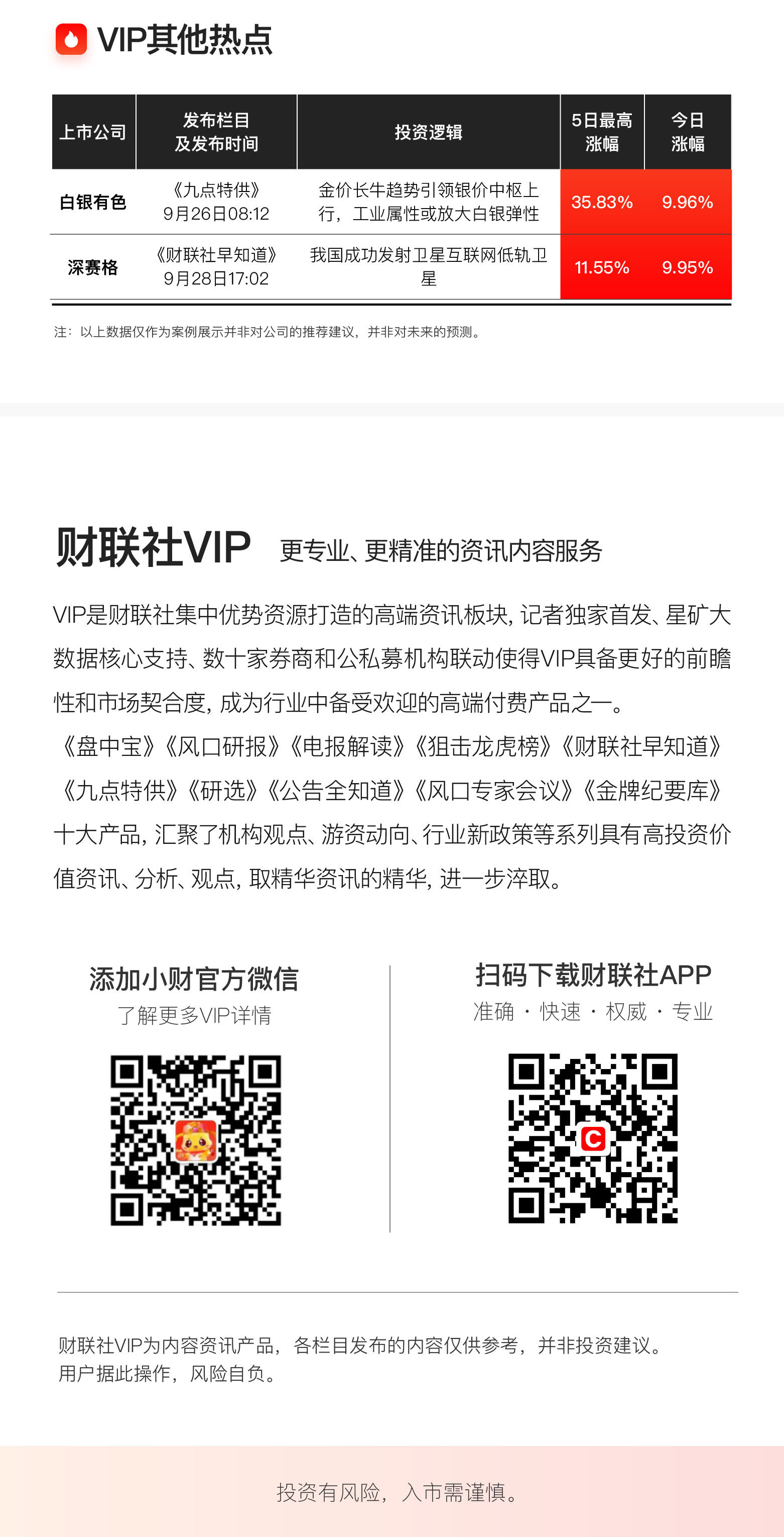 注:财联社VIP为内容资讯产品,并非投资建议。以下内容仅为资讯价值展示非对相关公司的推荐建议,非未来走势预测。投资有风险,入市需谨慎。