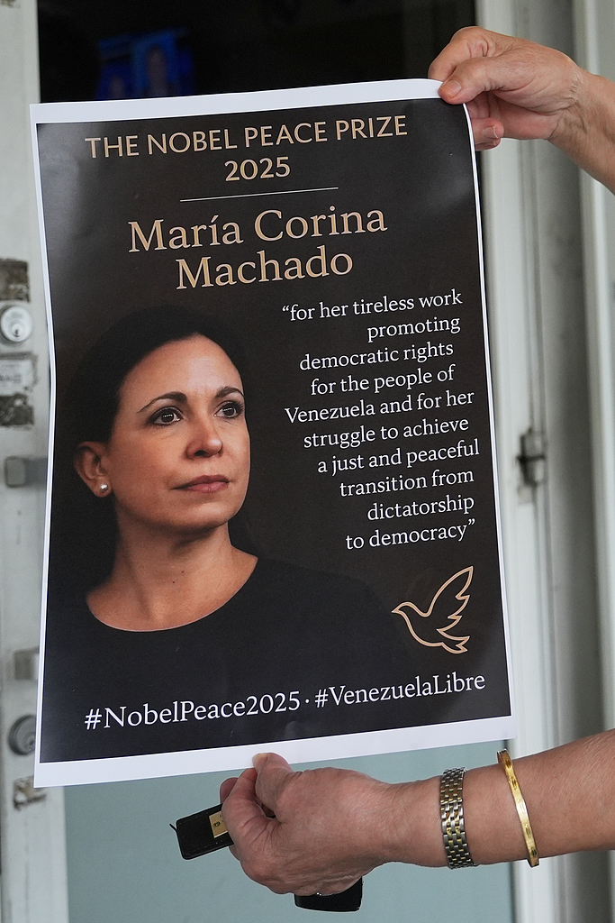 宣布诺贝尔和平奖归属的挪威诺贝尔委员会由五人组成,包括一名人权倡导者、一名外交政策专家和三名前部长,均来自挪威。该委员会其实于周一就做出了最终奖项归属的决定,并在周五宣布决定前几分钟致电了马查多。