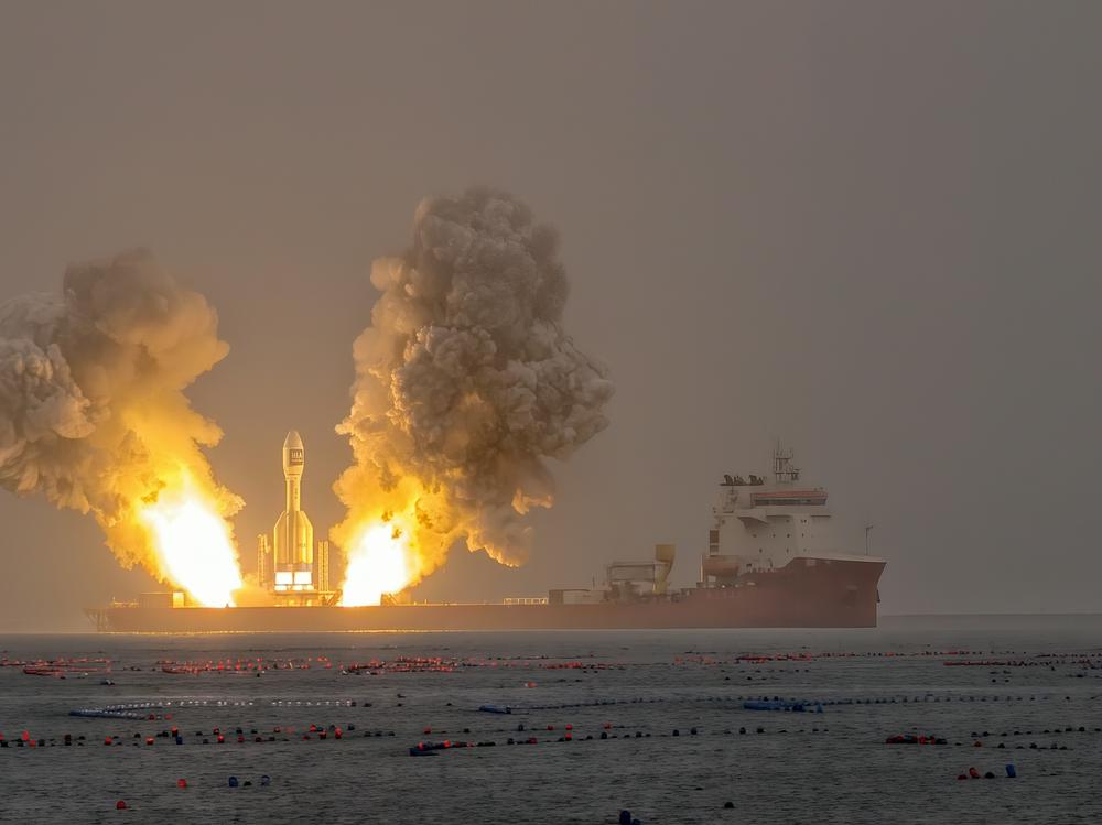 9月15日,由北京天兵科技有限公司自主研制的天龙三号大型液体运载火箭在山东海阳东方航天港海上平台完成一级动力系统试车。