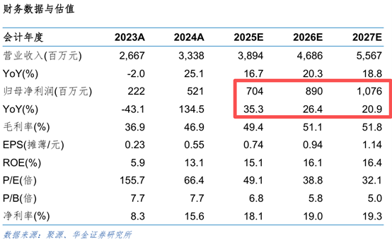 ③华金证券熊军看好公司前三季度半导体相关业务营收累计增长亮眼,预计2025-27年归母净利润分别为7.04/8.90/10.76亿元,同比增长35.3%/26.4%/20.9%,对应PE为49.1/38.8/32.1倍;