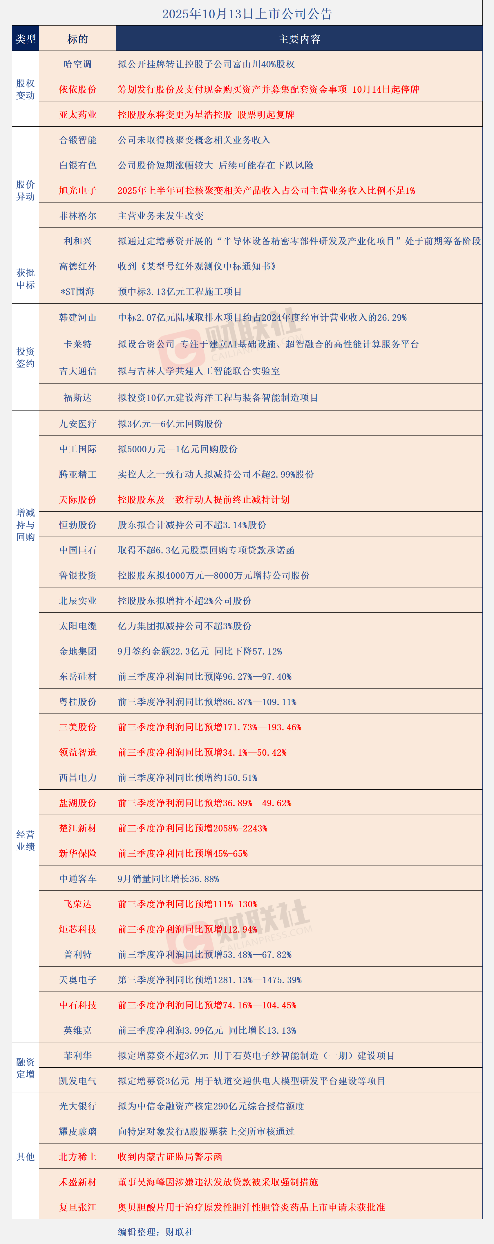 金力永磁(300748.SZ)公告称,公司股票于2025年10月9日、10日、13日连续三个交易日收盘价涨幅偏离值累计达到39.94%,属于股票交易异常波动情形。经核实,公司未发现前期披露的信息需要更正或补充,近期经营情况正常,内外部经营环境未发生重大变化。公司、控股股东和实际控制人不存在应披露而未披露的重大事项,也无筹划阶段的其他重大事项。公司提醒投资者注意二级市场交易风险,理性投资。