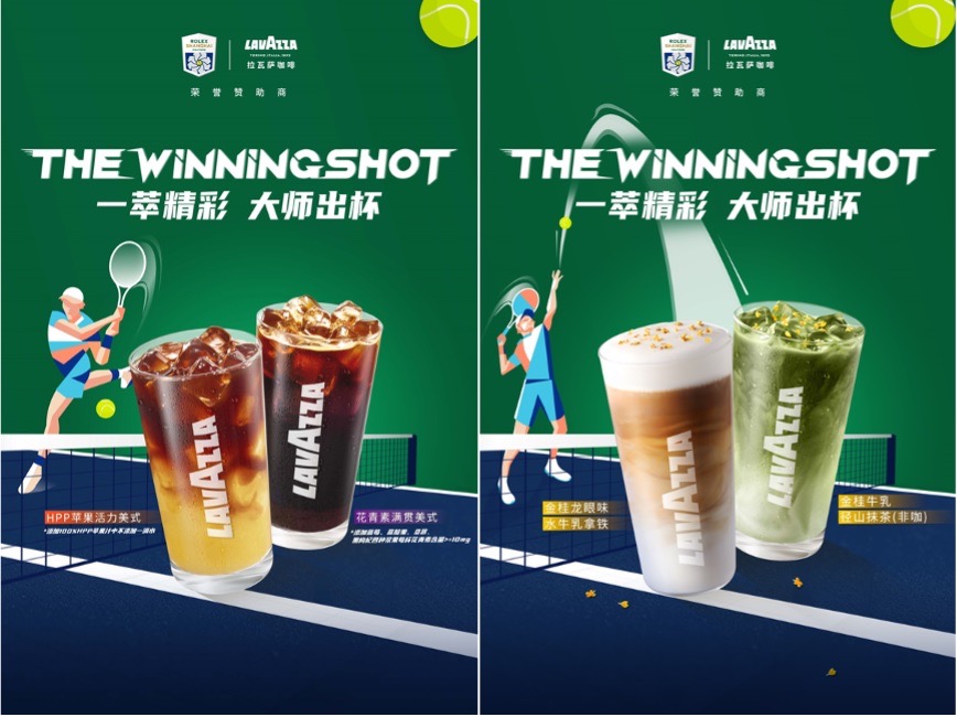 意大利咖啡品牌Lavazza拉瓦萨第三次担任大师赛官方唯一咖啡赞助商。今年,品牌以“网球赛事”为灵感,推出多款创意饮品及周边产品,其中包括两款针对网球爱好者的全新饮品——HPP苹果活力美式与花青素满贯美式。同时更在赛事现场布局5大点位,以“运动+科技”为核心,结合AR技术打造虚拟网球场,观众可扫码参与“隔空对战”游戏,赢取定制礼品。品牌巧妙地将“运动+咖啡”结合,延展了消费场景,也让网球文化更具社交张力。