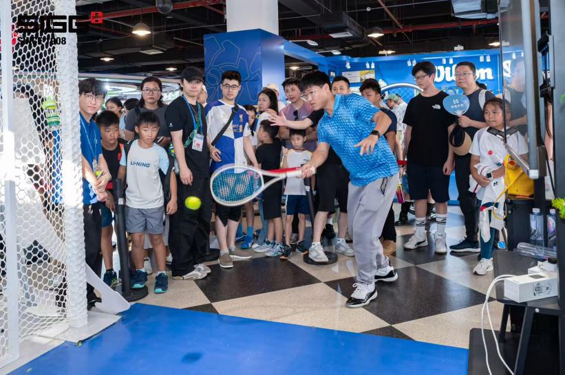 SIGG展位提供的AI网球分析系统,可根据体验者挥拍击打网球,实时生成三维动作轨迹,并输出包含“发力点分析”和“姿势修正建议”的个性化报告