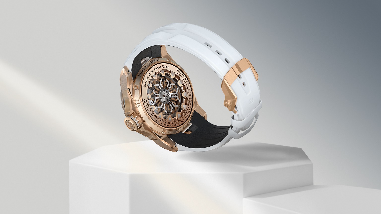 本款时计限量发行28枚。时计搭配白色皮革表带,并采用了现代化的快拆系统,表背饰有自2013年以来本系列每一枚作品都镌刻的梅林名言:“最英勇的骑士们,将围绕着这张圆桌齐聚一堂,骑士们将展开冒险,伸张正义、保护弱者、并击退傲慢”。