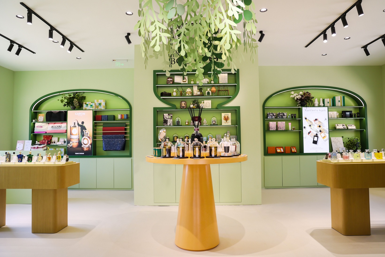 延续游猎动线,后方的森林绿境则营造出一处融合自然意象与多元香氛的休憩式闻香空间。以PERFUME BOX品牌绿色为主调,汇聚20余个品牌的150余款香气,并拓展至家居香氛、身体护理与车载场景,让每一缕香气都成为可沉浸、可休憩的情感触手。