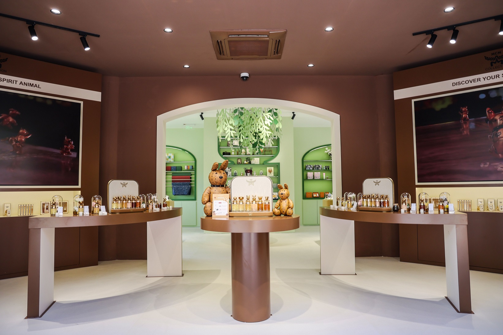 在快闪空间内部,将“气味游猎”的主题转化为可感知、可互动、可记忆的沉浸式体验。前区的MCM动物园香水专区以“寻香识动物人格”为互动主线,将全系列香水与萌宠艺术装置、定制打卡镜面有机结合,构建出一个充满趣味与辨识度的“香气人格测试场”。观众不仅可试香,更可通过影像互动与气味选择,完成一场关于自我个性的嗅觉识别与表达。