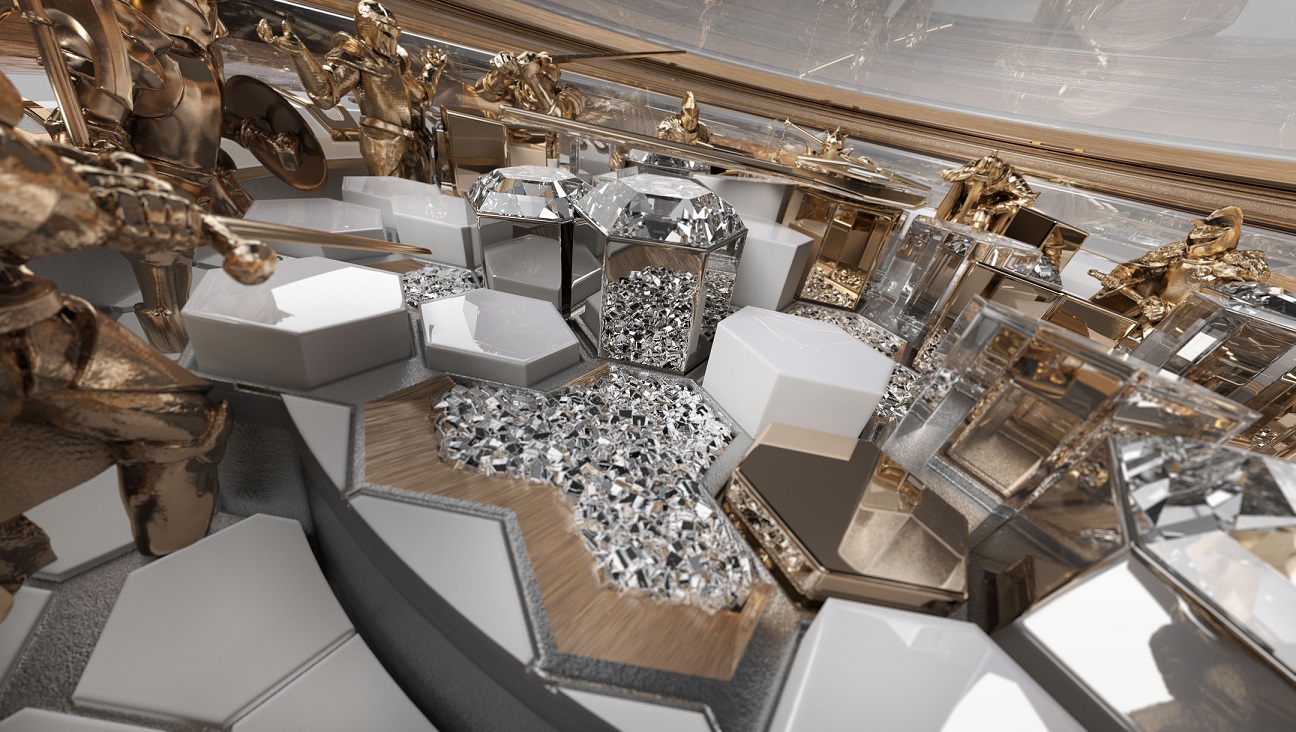 自圆桌骑士系列诞生以来,罗杰杜彼Roger Dubuis不断从亚瑟王与圆桌骑士的传奇中汲取创作灵感,挥洒品牌基因中的无畏态度与美学创意。第四卷“梅林传奇”的第二篇章,围绕魔法师梅林与其挚爱“湖中仙女”薇薇安的传说而展开。相传为守护挚爱安危,梅林用魔法在梦幻花园环绕的湖泊上为其建造了一座熠熠生辉的水晶宫殿。