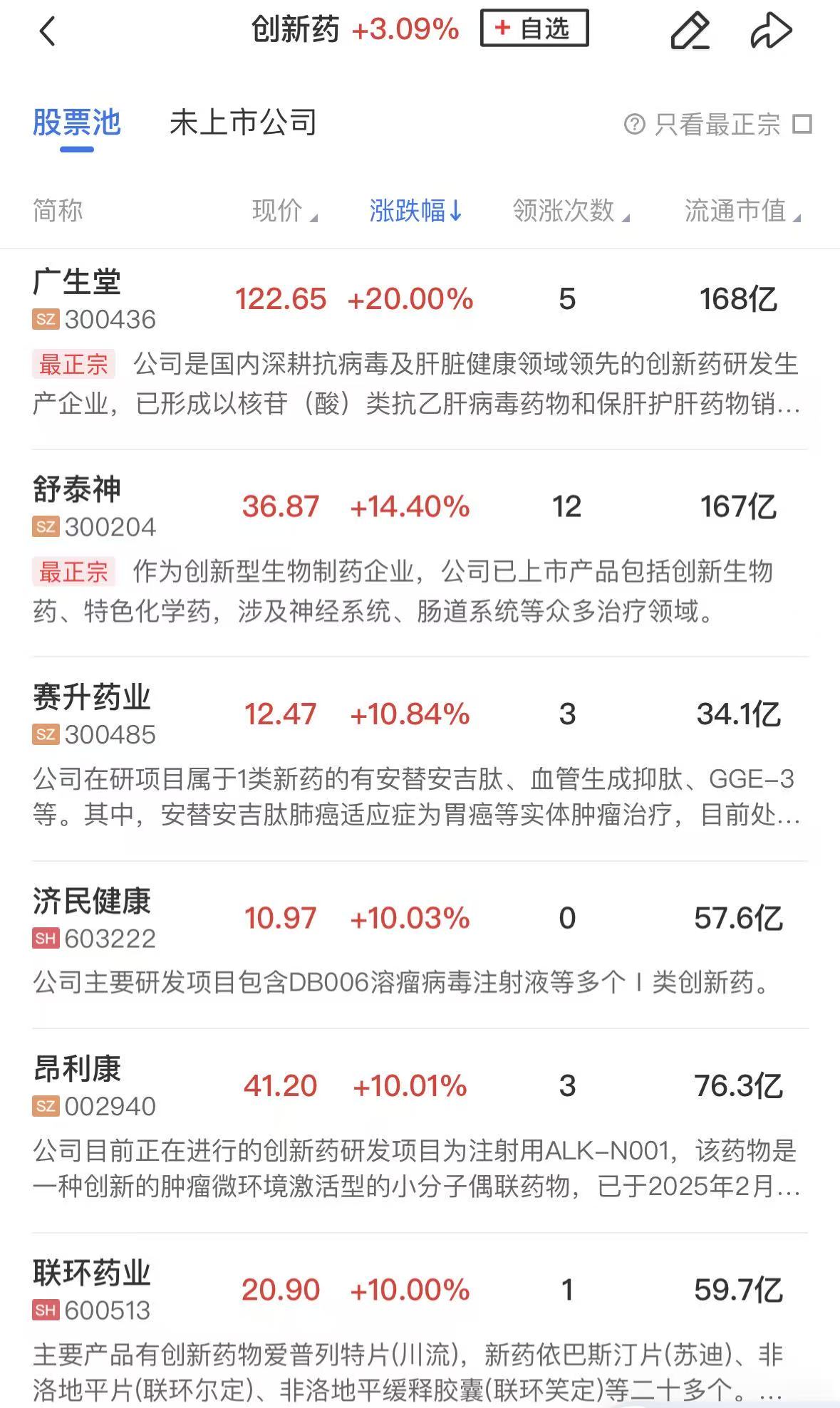 板块上,创新药方向展开反弹,广生堂、济民健康、昂利康、联环药业涨停,舒泰神、翰宇药业、塞力医疗、热景生物等涨超8%。