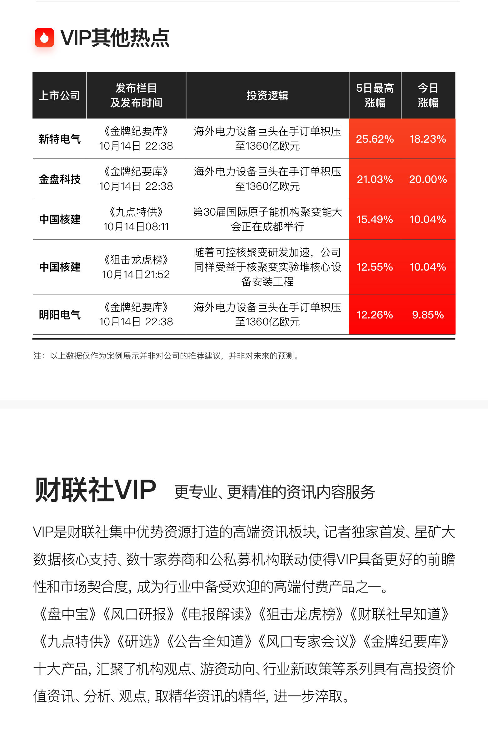 注:财联社VIP为内容资讯产品,并非投资建议。以下内容仅为资讯价值展示非对相关公司的推荐建议,非未来走势预测。投资有风险,入市需谨慎。