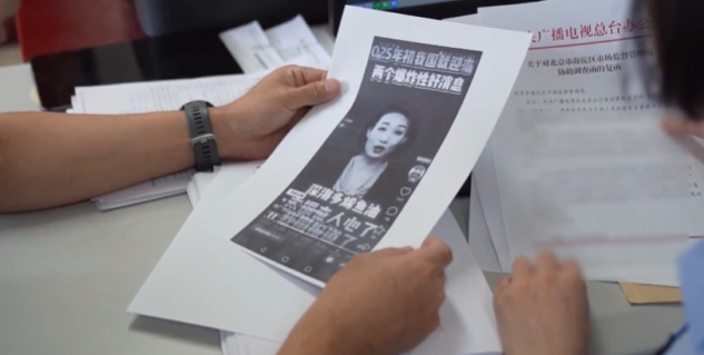 通过举报人提供的视频链接,办案人员打开该企业直播间,在这个拥有88万粉丝的账号直播间展板上,显著标注着“适合头晕头痛、手麻脚麻、记忆下降人群”等医疗用语;直播中还出现了中央广播电视总台主持人李梓萌的形象。