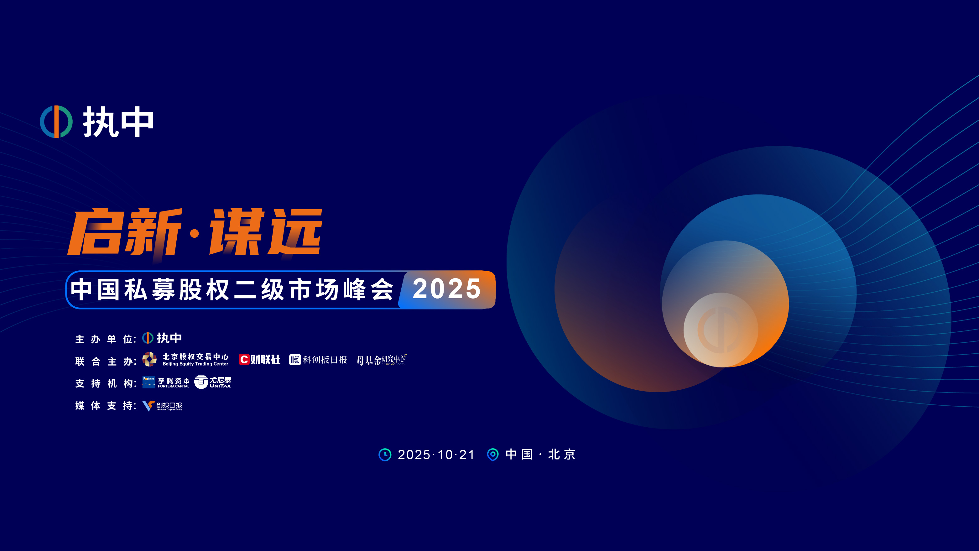 在此背景下,执中联合北京股权交易中心、财联社、科创板日报、母基金研究中心,将于10月21日在北京举办“启新·谋远——中国私募股权二级市场峰会2025”。