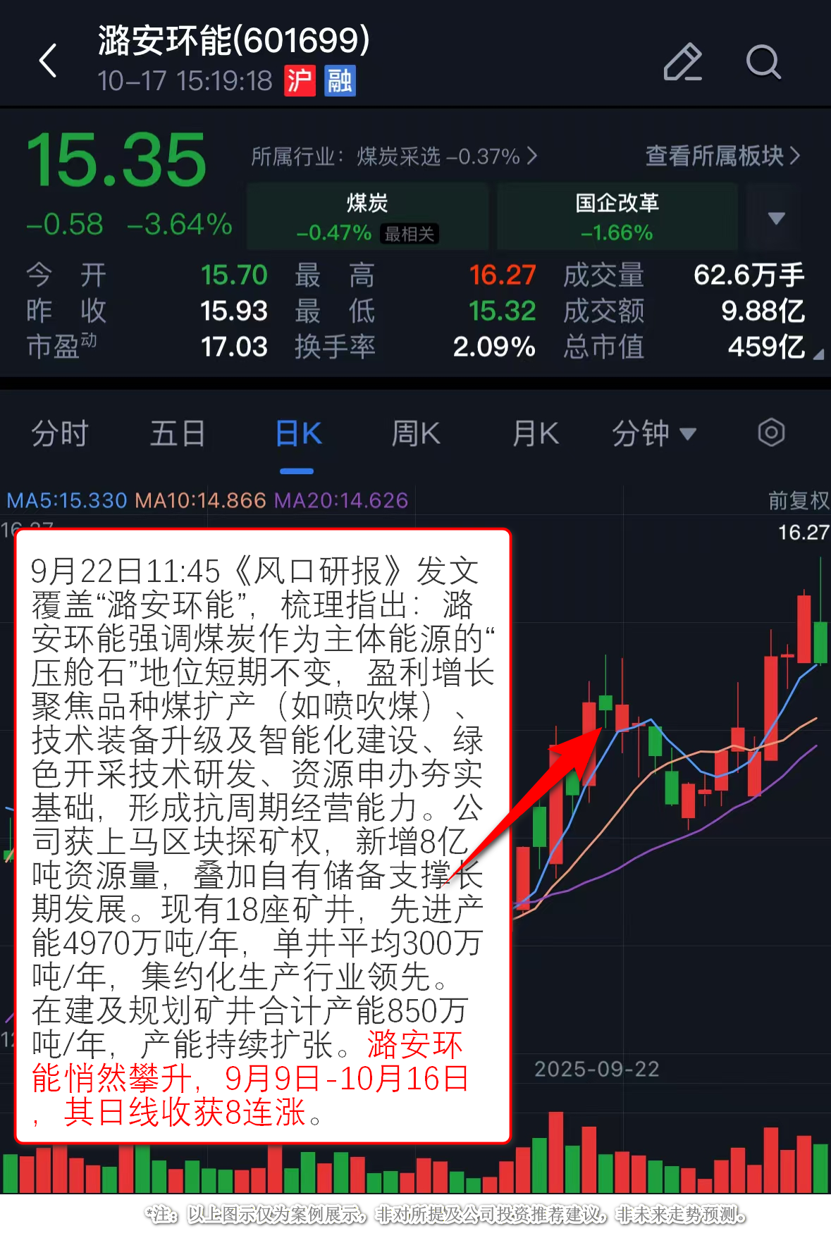 近期,煤炭板块表现活跃,潞安环能悄然攀升,9月9日-10月16日,其日线收获8连阳。