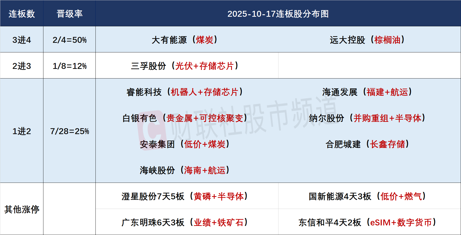 连板晋级率降至25%,伴随市场再度陷入普跌行情,活跃资金仍逆势抱团部分高位股,远大控股、大有能源双双实现3进4,此外昨日实现反包板的10厘米人气股合肥城建、白银有色双双向上加速实现连板晋级,昨日实现弱转强的澄星股份今日继续分歧转一致涨停走出7天5板。此外近期红利股表现继续强于大盘,除去受益低温的煤炭板块继续逆势走强外,银行板块近期表现持续回暖,农业银行录得日线11连阳,盘中一度涨超2%续创历史新高。随着30年国债期货录得日线四连阳,长债收益率下行使得高股息个股的投资价值再度显现。