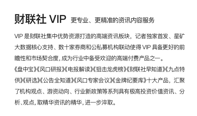 注:财联社VIP为内容资讯产品,并非投资建议。以下内容仅为资讯价值展示非对相关公司的推荐建议,非未来走势预测。投资有风险,入市需谨慎。