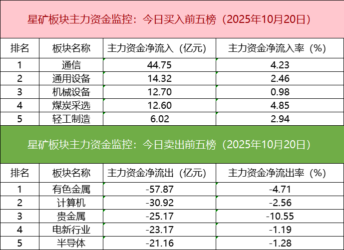 从主力板块资金监控数据来看,通信板块主力资金净流入居首。