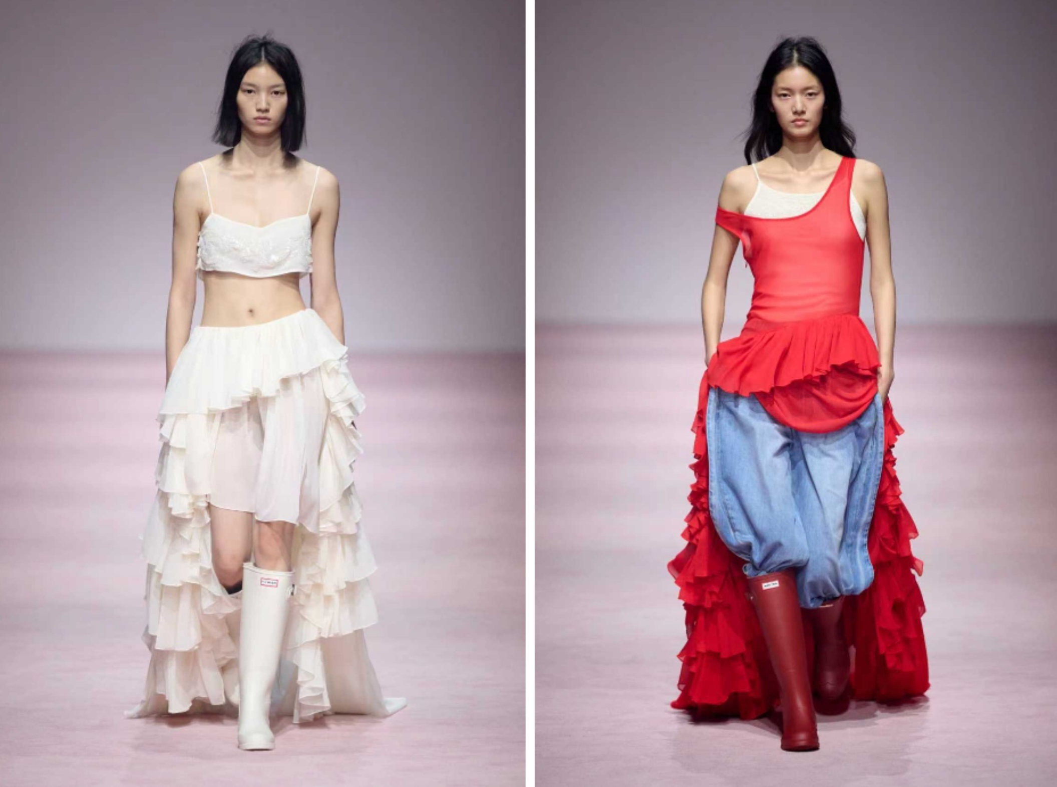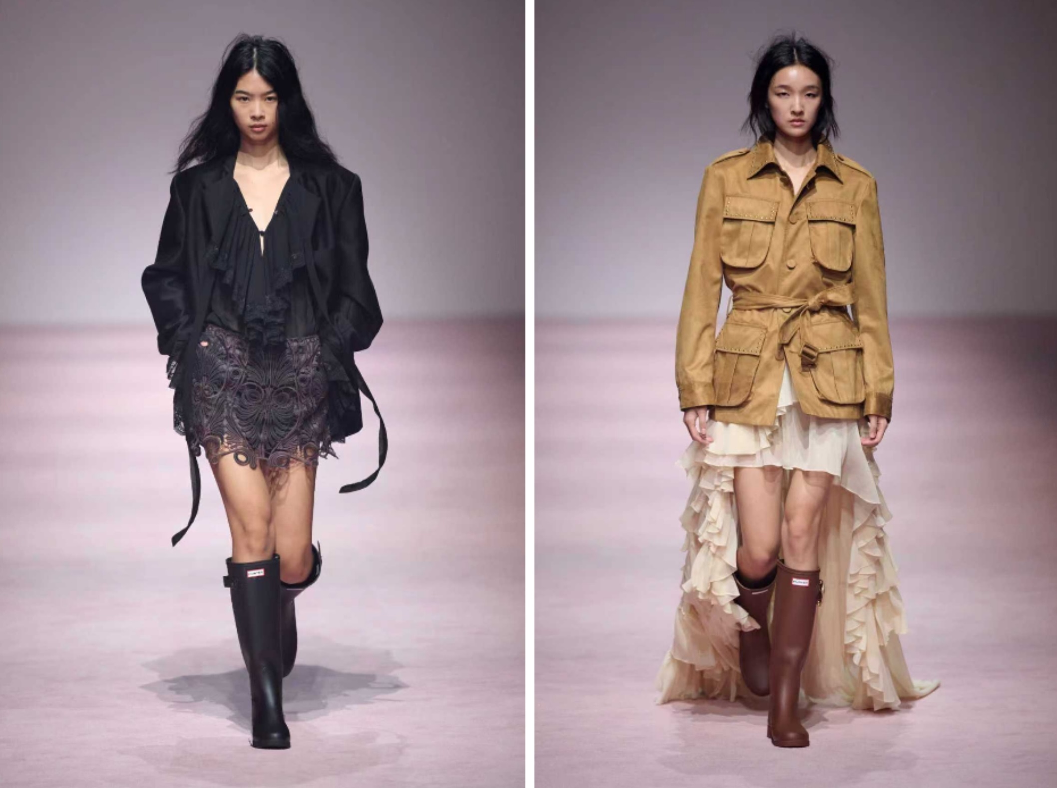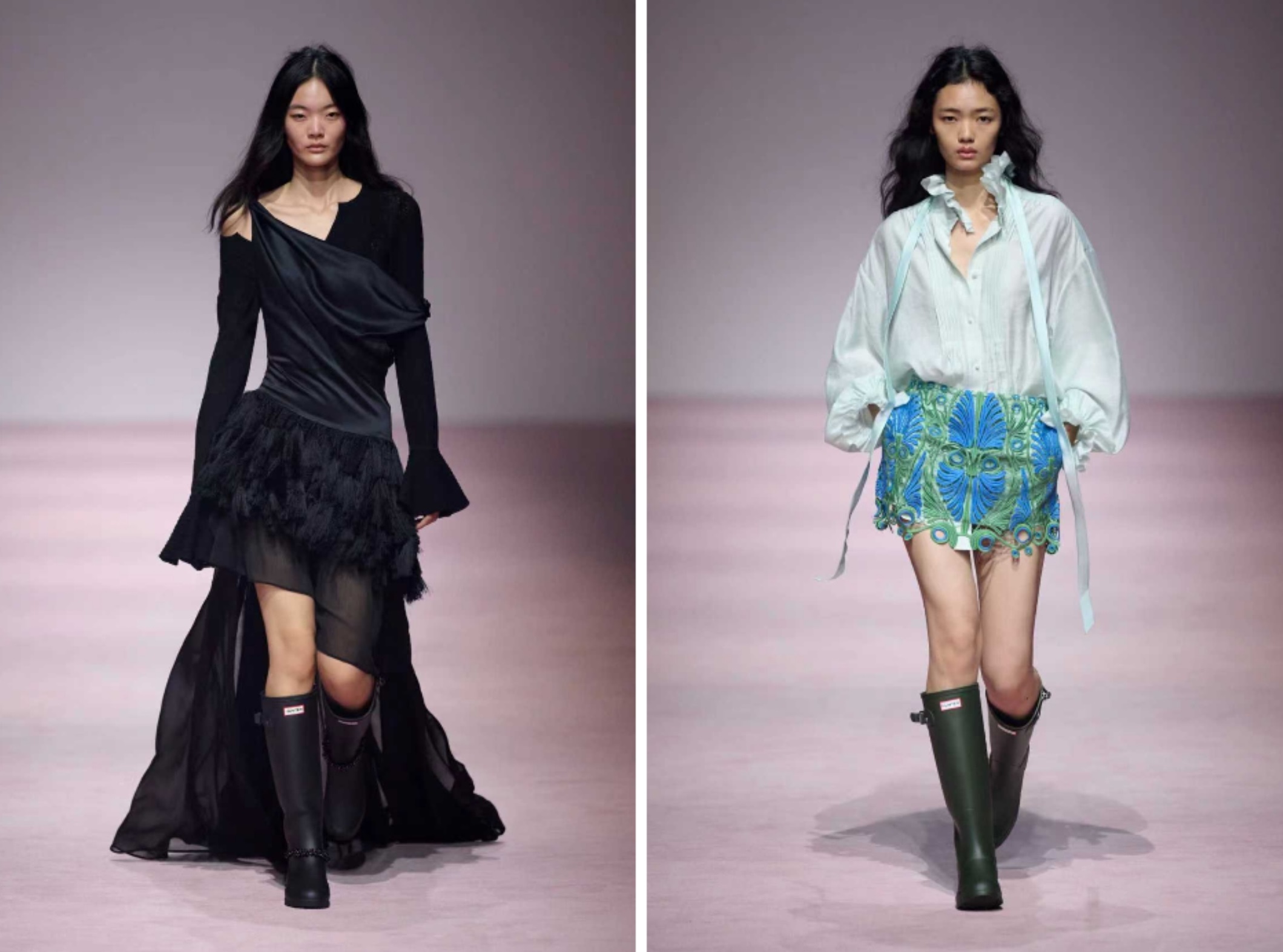 作为Authentic Plus的启幕之作,Authentic于本届上海时装周期间,呈现旗下标志性品牌HUNTER与中国高级时装品牌XU ZHI的秀场联名合作。HUNTER始终致力于打造帮助人们尽情把握生命每一刻的优质产品。品牌于1956年推出的标志性惠灵顿雨靴,已成为风靡全球的经典文化符号。XU ZHI由设计师陈序之2015年创立于伦敦,品牌专注于面料研发与工艺创新,以独特的东方美学语言,探讨柔软与坚韧、繁复与简约之间的张力,在国际时尚界备受瞩目。