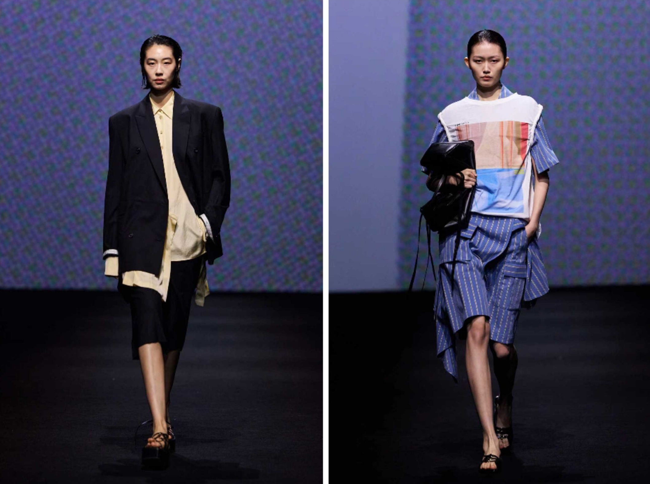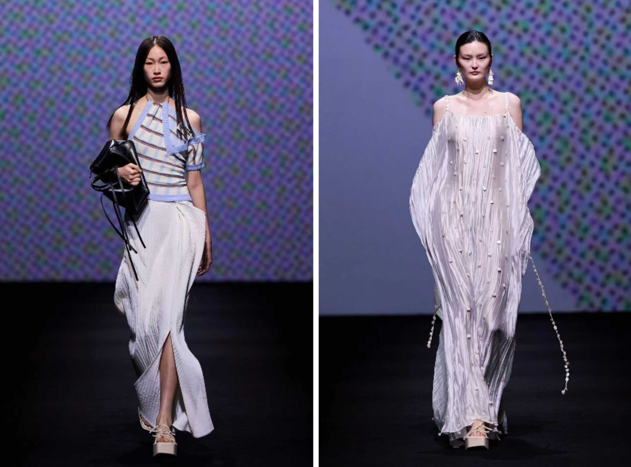 本季,新天地秀场以“魔方”概念焕新升级,进一步深化自2024年首创的可持续秀场理念,一方面延续秀场循环理念,将搭建材料回收率保持在90%以上;另一方面借助模块化结构与动态视觉系统,打造出昼夜切换的多维空间,在增强视觉效果的同时降低一次性耗材的使用,切实履行对环境责任的承诺。